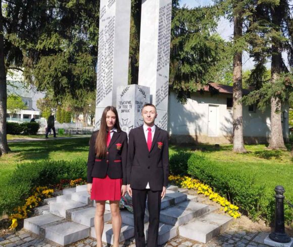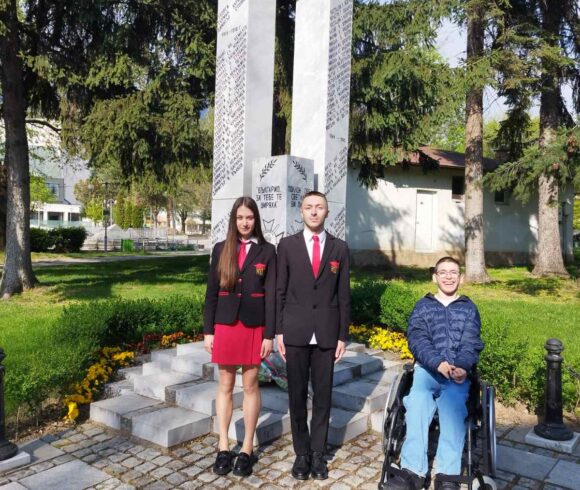 След тържествената част училищната общност се отправи на поход до паметната плоча на военнослужещите във Военното поделение в гр. Гоце Делчев. Там учениците от 11а и 11б клас поднесоха цветя в знак на почит към загиналите във войните за освобождение и обединение на България от Неврокопския край.