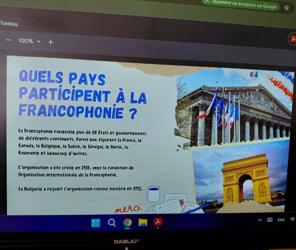 Учениците бяха подготвили и презентации с интересни факти за франкофонията и франкофонския свят. С голям ентусиазъм те се включиха и в интерактивен куиз , който провери знанията им за историята на френския език и култура.