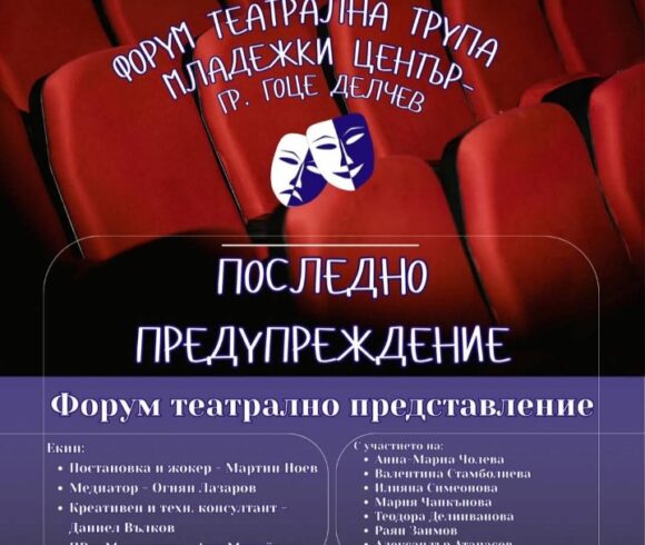 Поредно представление на талантливите театрали на НПГ към театралната трупа на Младежки център – Гоце Делчев.